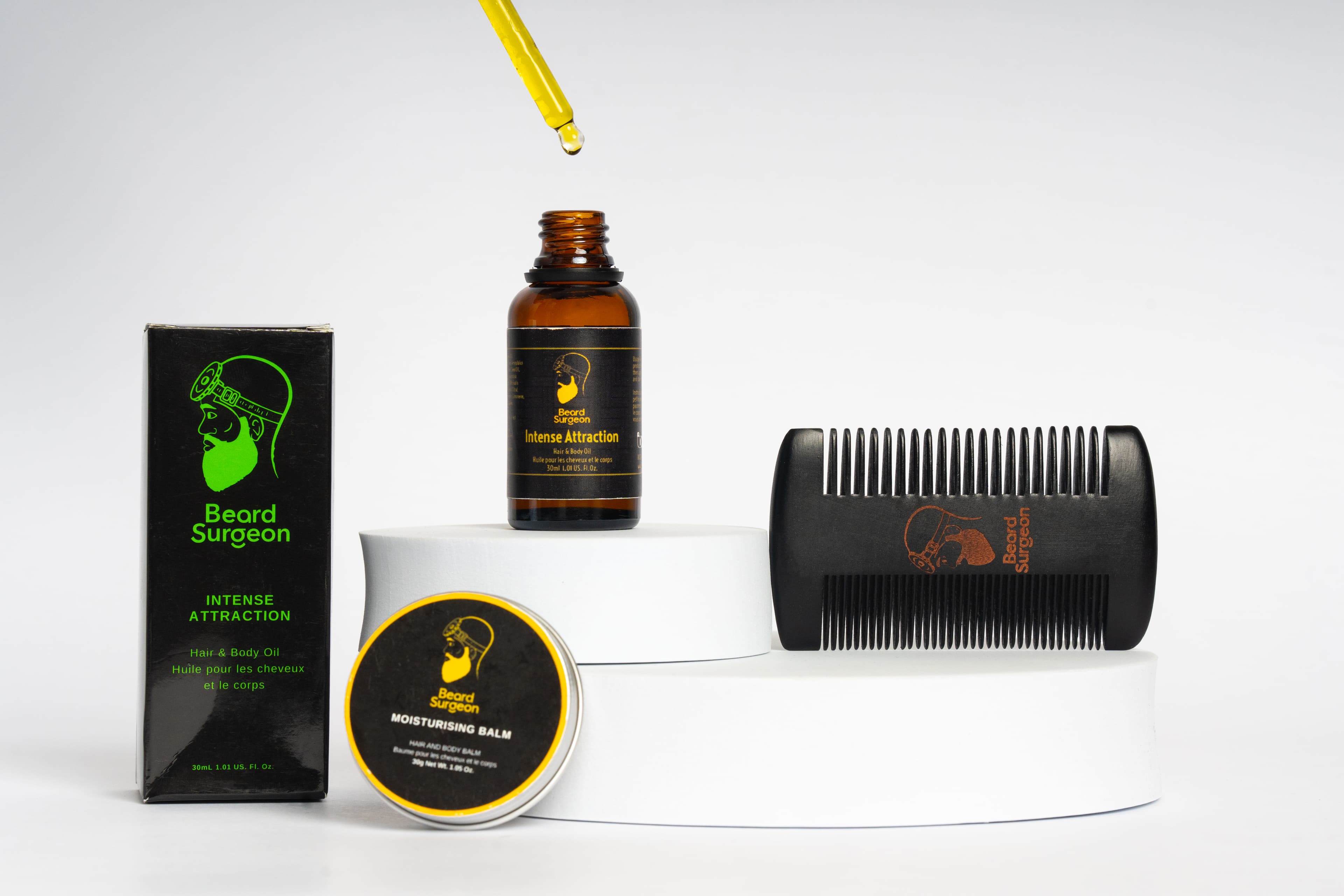 This comprehensive bundle includes two Luxury Scented Hair, Beard & Body Oils and two Multipurpose Scented Balms. It's the perfect choice for those who demand the very best in grooming and style.
